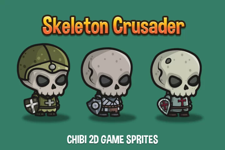 Free Chibi Skeleton Crusader Character Sprites is a beautiful set that gives you the opportunity to step into the realm of eerie valor and eternal, righteous duty! These tiny undead knights combine the charm of the chibi style with the harsh edge of crusader warriors. Perfectly prepared in vector format, they allow you to easily transfer them into the world of RPGs, MMOs, quests, battles, adventures, exploration, survival, side-scrollers, fantasy, strategies and many other genre worlds of the modern gaming industry, adding an exciting mixture of heroism and ghostliness to your game world.