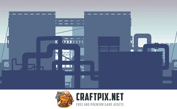 - Factory Buildings and Backgrounds—towering silhouettes, pipes, and industrial skylines create the mood of futuristic cityscapes. The backgrounds also feature parallax and infinite scrolling.
