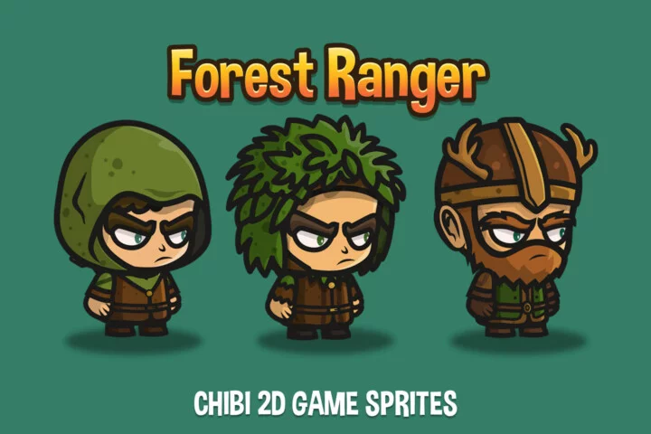 Immerse yourself in the heart of the wilderness with Free Forest Ranger Chibi Character Sprites. It’s a charming and expressive character set designed for 2D game developers looking to bring nature-inspired heroes to their worlds. This set captures the spirit of forest guardians, combining cute chibi proportions with a confident, battle-ready demeanor. Whether you’re creating a fantasy RPG, adventure platformer, combat, exploration, runner, MMO, or strategy game with a distinctly environmental theme, these characters will feel right at home among the trees, ruins, and hidden forest paths. This set includes three different Forest Ranger characters, each with their own visual personality and character, but all rendered in a unified vector style: