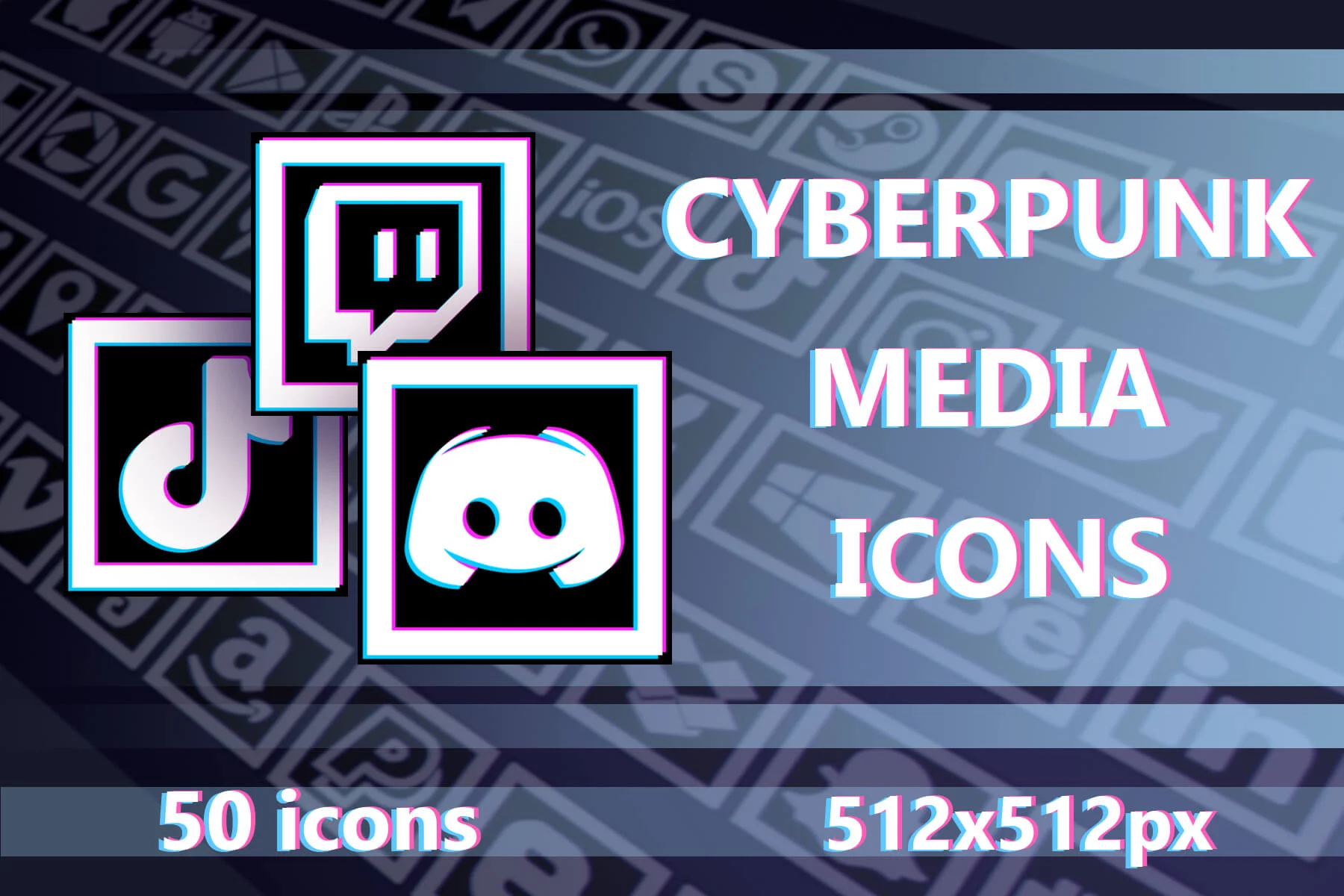Delve into the glittering networks of the digital future with the Free Media 512×512 Icons for Cyberpunk Game Set, a stylish and versatile icon collection designed for developers who want their game interfaces to look modern, connected, and vibrant. Inspired by the aesthetics of neon metropolises and futuristic data streams, this set is ideal for projects where technology, communication, and digital culture play a central role. Whether you’re creating a cyberpunk RPG, a hacking simulator, a futuristic social hub, or a sci-fi mobile game, these icons will help create a believable and immersive digital environment. Within the set, you’ll find a variety of unique and compelling icons, all prepared at 512×512 pixels, each designed with distinctive silhouettes, clean lines, and vibrant color contrasts in a cyberpunk style.