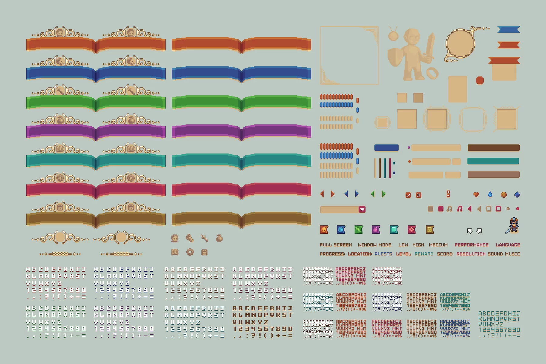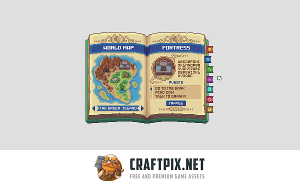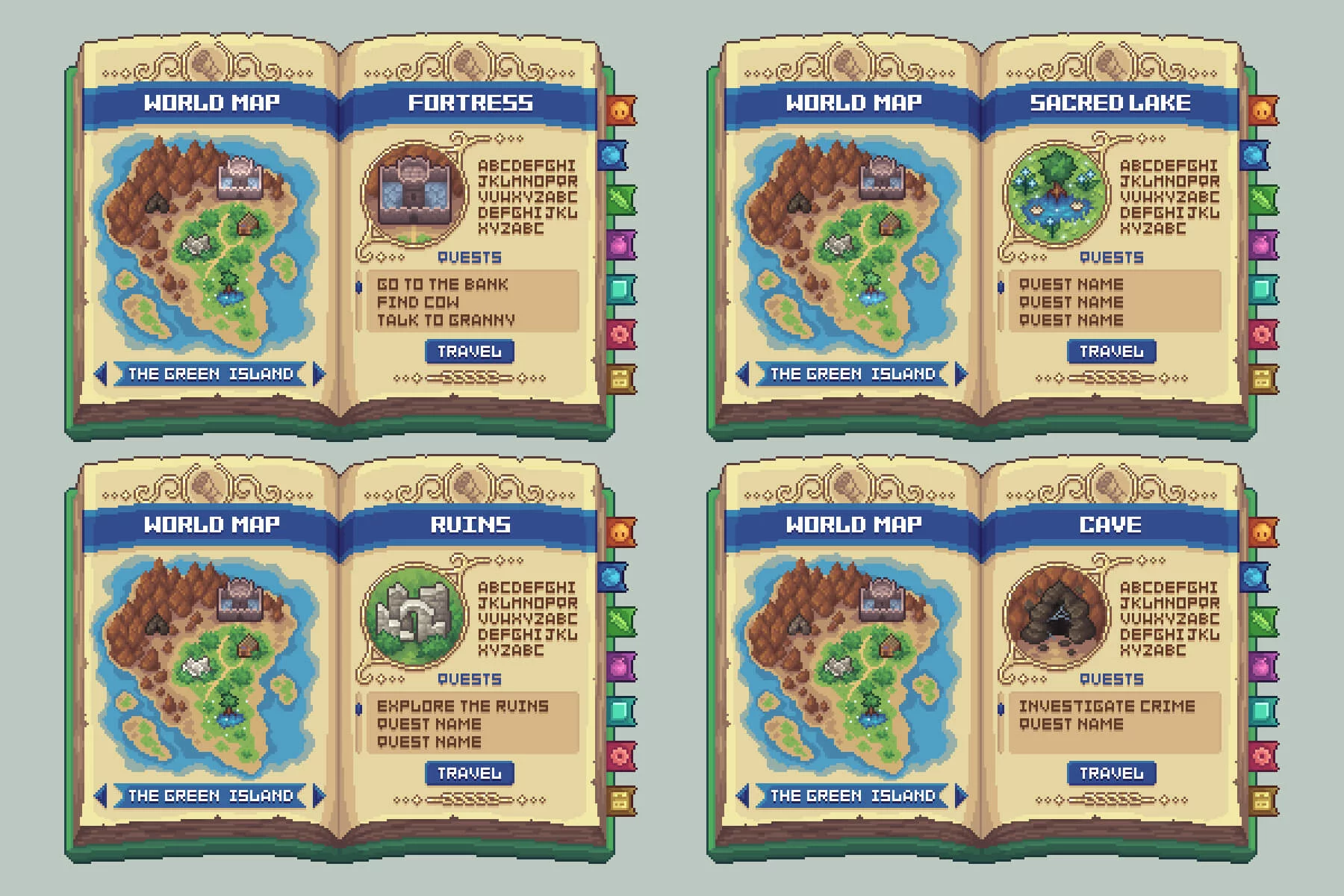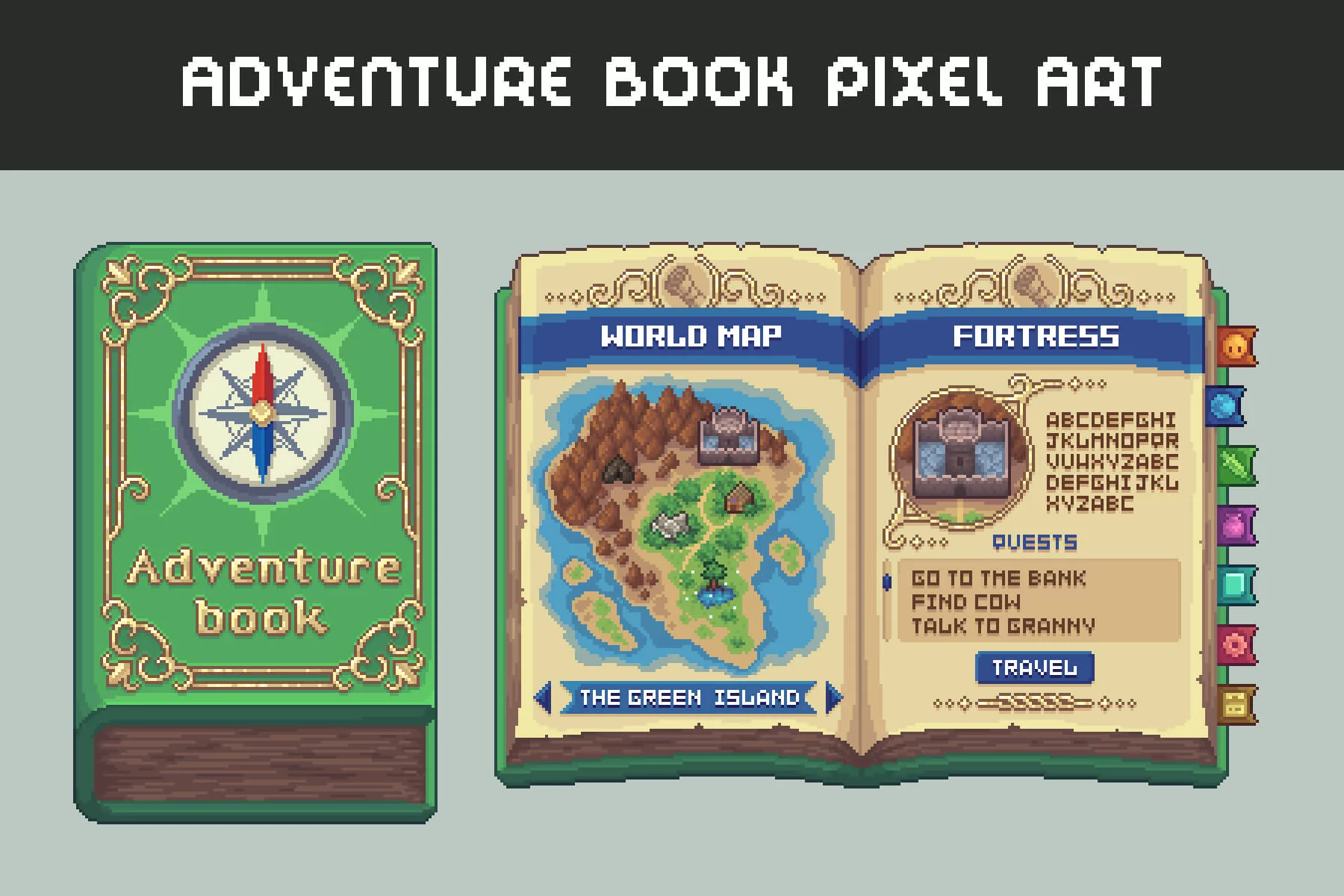Adventure Fantasy Book Pixel Art is a high-quality and original solution for game developers, designers, and writers looking to bring game worlds to life through detailed visual storytelling. This set builds on the concept of interactive fantasy books, combining classic RPG aesthetics with the modern precision of pixel art. It is designed to enable creators to transform simple user interface elements into captivating storytelling tools. Unlike standard interface elements, this set focuses on thematic consistency and narrative depth. Each element is constructed to feel like part of a living fantasy universe. Instead of isolated graphic elements, you get a coherent, step-by-step system. It can be used to create quest logs, spellbooks, lore journals, or inventory menus. These capabilities make it particularly valuable for many genres, including RPGs, MMOs, combat, exploration, survival, adventure, travel, runner games, and side-scrollers.