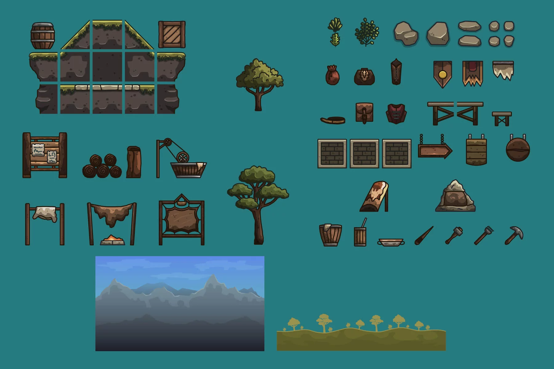 Every asset is created with clean, polished vector graphics, ensuring sharp quality at any resolution and full compatibility with all major game engines. The modular structure lets you build rich scenes effortlessly, while the cartoon aesthetic keeps your world approachable, expressive, and full of character. And with full editability in vector tools like Adobe Illustrator, you can easily recolor, resize, or tailor assets to match your project’s unique visual identity. It’s the perfect choice for fantasy adventures, crafting simulators, combat, exploration, survival, management games, or even cozy pixel RPGs and MMOs.