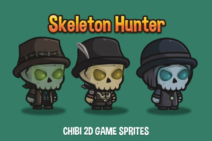Chibi Skeleton Hunter Character Sprites are a charming and versatile sprite pack that is perfect for adding a creepy yet charming feel to your 2D games. Designed with a unique combination of spooky and stylish looks, these hunters feature meticulously crafted details. Thus, making them perfect for RPGs, platformers, roguelikes, MMOs, quests, exploration, adventure games and more. Whether you’re looking for an unusual protagonist, a challenging enemy or an NPC with a strong personality, this pack is perfect for you.
