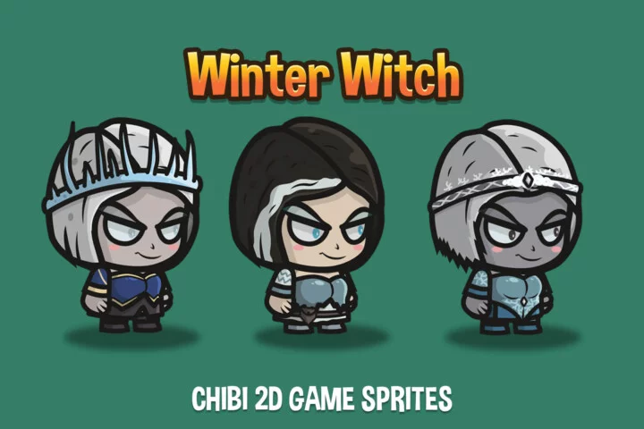 Step into a realm where ice and snow meet in the path of every player, with this Chibi Winter Witch Character Sprite pack. If you are a beginner or an experienced 2D game developer who dreams of creating an exciting game world filled with mysticism, magic, and fantasy adventures, then this set will perfectly suit your needs. Its magnificent selection, which consists of three characters, each of which is distinguished by their own style and even emotion, is ready to dominate the battlefield with the help of their chilling powers and mysterious presence: