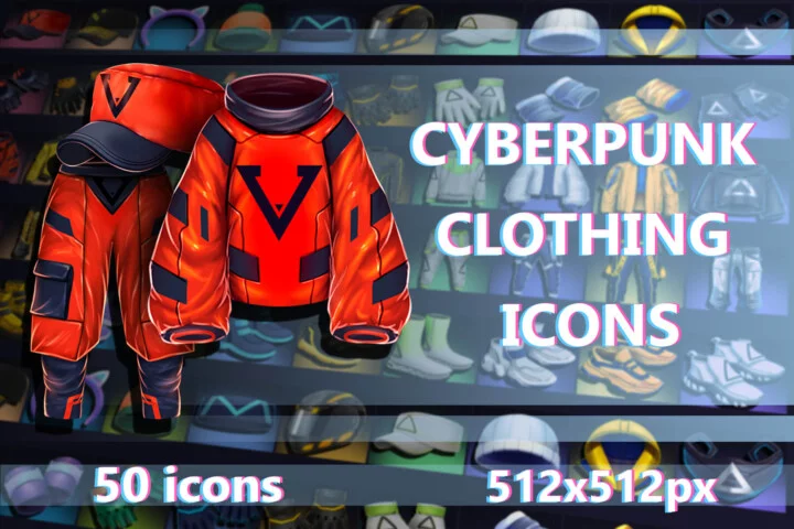 Introducing Cyberpunk Clothing Icons 50 PNG 512×512, an essential collection for game developers and digital designers looking to infuse their projects with elements of futuristic fashion, neon energy, and cyberpunk aesthetics. This set includes a wide range of clothing items designed to bring individuality and bold character customization to any cyberpunk-inspired universe. Perfect for RPGs, MMOs, visual novels, adventures, quests, exploration, or inventory systems, these icons will instantly enliven and decorate your game world.