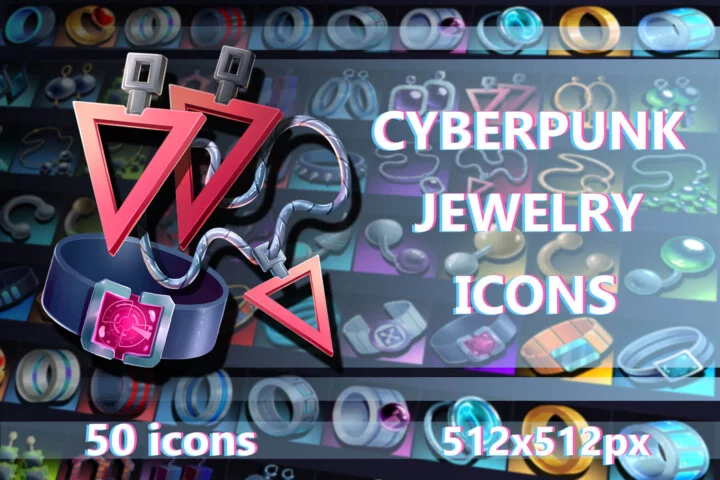 Introducing Cyberpunk Jewelry Game 512×512 Icons, a futuristic treasure trove of high-resolution jewelry icons designed to take your Sci-Fi and cyberpunk games to the next level. Whether you’re creating an in-game store, loot system, or character customization screen, this collection will add a splash of neon sophistication to every pixel of your world. With 50 unique icons stylized in a dazzling 512×512 resolution, this set offers endless aesthetic possibilities, from gritty underground merchants to sophisticated corporate elites in neon-lit metropolises.
