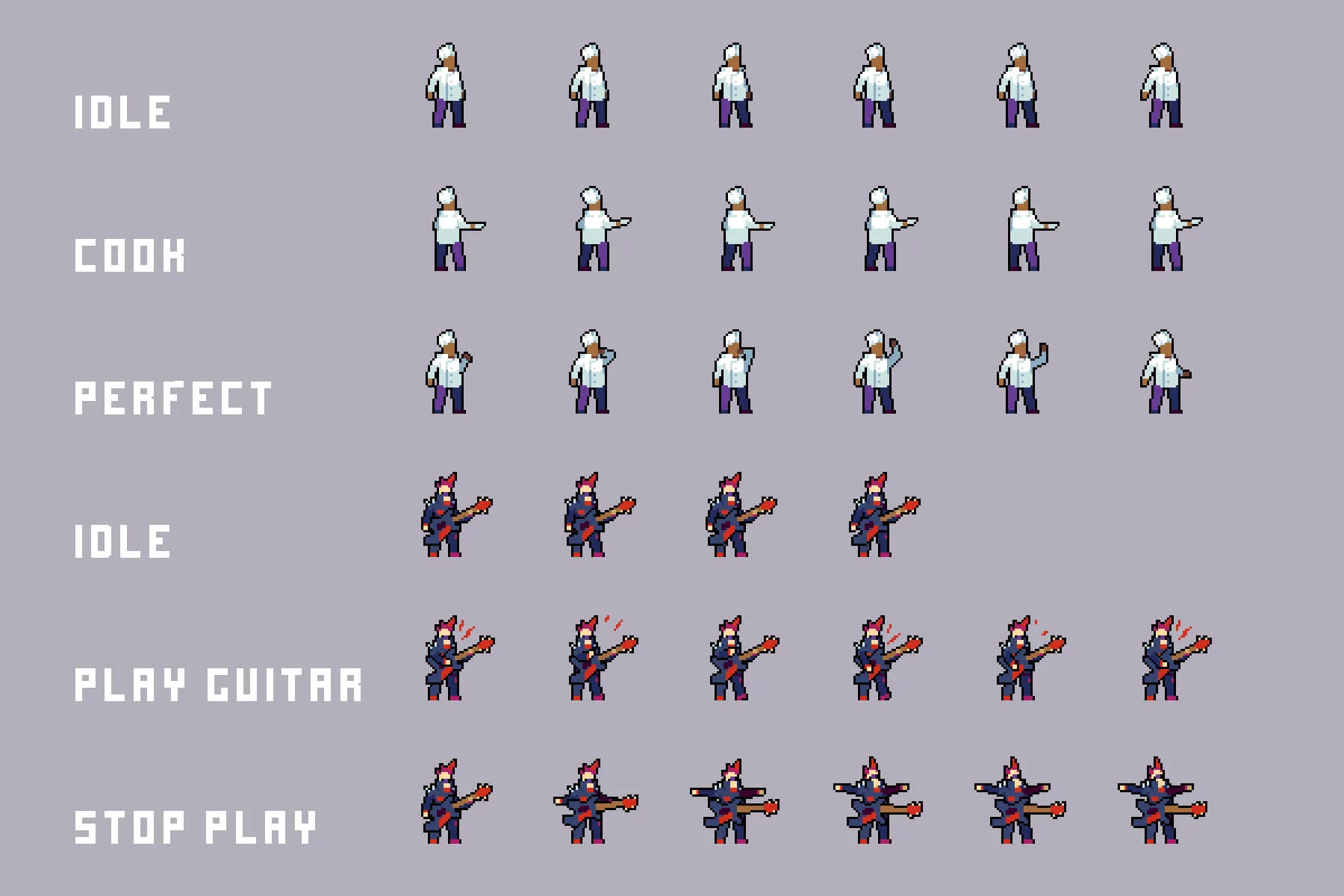 - Kitchen Characters: cooks with idle, cooking, and “perfect dish” animations, ideal for restaurant gameplay mechanics or background activity.