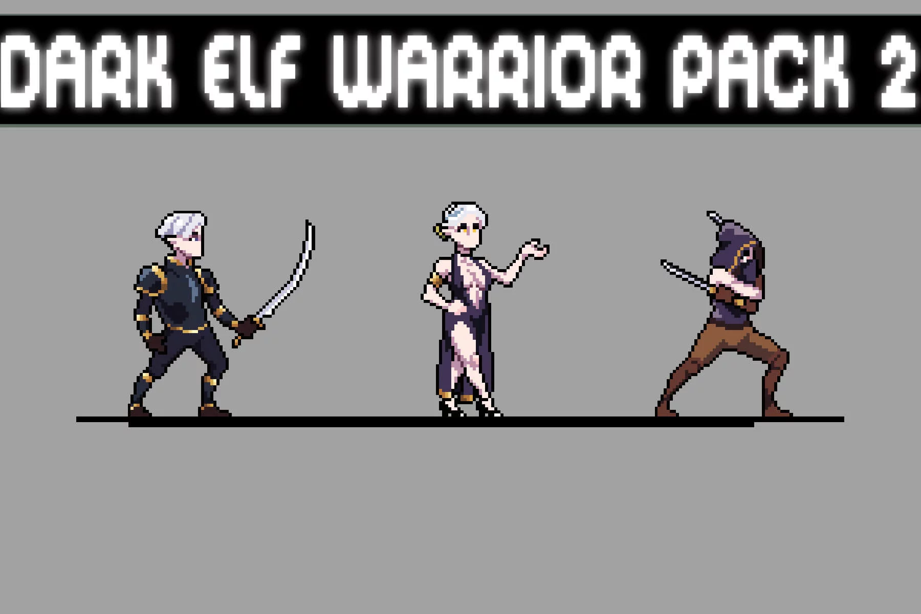 Delve into the shadows of a mysterious underworld with Dark Elf Sprite Pixel Art Asset Pack 2, an exquisite collection created for developers looking to bring elegance, danger, and a dark fantasy atmosphere to their 2D games. Inspired by the classic pixel aesthetic and the enigmatic nature of the dark elves, this set is perfect for creating immersive worlds filled with stealth, magic, and deadly precision. Whether you dream of bringing your world to life in MMO or RPG genres, side-scrollers, action platformers, roguelikes, retro adventures, or survival games, these characters will instantly add depth and intensity to your game project. This set features three distinct dark elf archetypes, each with a unique personality in appearance, combat style, and even story potential. Despite a uniform pixel art style, each character stands out in silhouette, animation, and personality, making them ideal for both protagonists and formidable enemies.