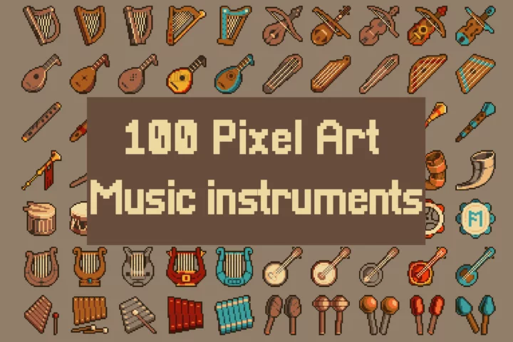 Introducing the Fantasy RPG Pixel Musical Instrument 32×32 Icons. This must-have collection is perfect for game developers looking to bring rhythm, melody, and magic to their pixel art worlds! This carefully crafted set features 100 unique musical instrument icons, all rendered in a charming 32×32 pixel art style. Whether your special bard character is singing epic ballads in a medieval tavern or an enchanted lyre is revealing ancient secrets, this set has everything you need to create an unforgettable gaming experience.