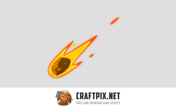 • Meteor Strike – A devastating projectile falling from the sky. This fiery meteor streaks across the screen before slamming into the ground, creating a dramatic impact, perfect for boss abilities, ultimate spells, or powerful environmental hazards.