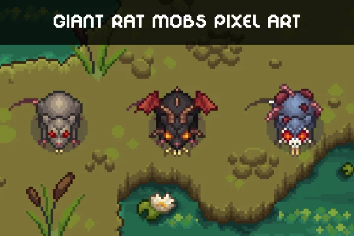 Each of these monsters has full 4-directional movement, which ensures smooth gameplay. Animations include idle, walk, run, hurt, and death. They are ready to convey terror and fear to your players, filling their every step with thoughtfulness, because you never know where one of the rats will appear. Moreover, thanks to the well-structured pixel art design, sprites can be easily customized to suit the unique aesthetic of your game. Change colors, add effects or adjust animations effortlessly using popular graphic editors such as Adobe Photoshop. Whether they serve as minions of a dungeon boss, wandering dungeon threats, or plague-bringing nightmares, this set is an essential asset. It is perfect for creating an unforgettable dark fantasy experience.