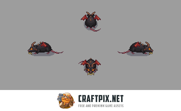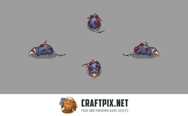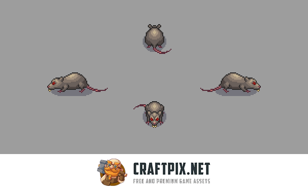 Here is the Giant Rat 4-Direction Pixel Character Sprite Pack. It is perfect for most 2D game developers, because its repository is filled with three carefully prepared creatures. They are able to bring a bit of horror, fear, unusual excitement and even difficulty to your game world, further enticing players to play. Regardless of whether you are developing an RPG, strategy game, dungeon crawler, MMO or adventure quest, these creatures will easily fit into dark alleys, abandoned ruins or underground lairs, enriching the exciting atmosphere of your game.