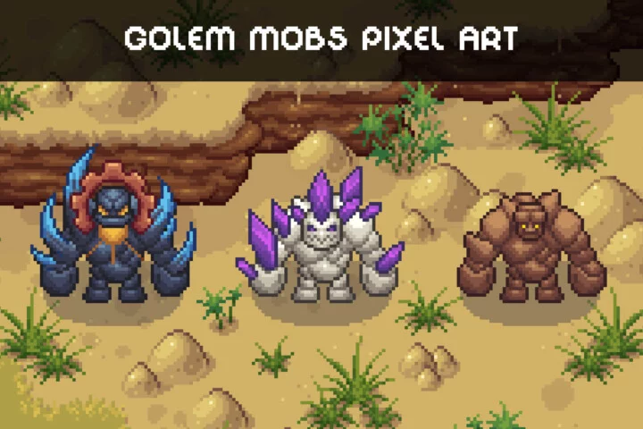 The Golem Pixel Art Top-Down Sprite Pack is your gateway to adding colossal power and ancient magic to your game world. These golem characters are ready to burst into your scenes, bringing a menacing presence to any dungeon, wasteland, or enchanted forest. This pack is perfect for RPGs, adventures, combat, top-down games, strategy adventures, and quest-based exploration, where golems act as guardians, adversaries, or even protectors of sacred relics.