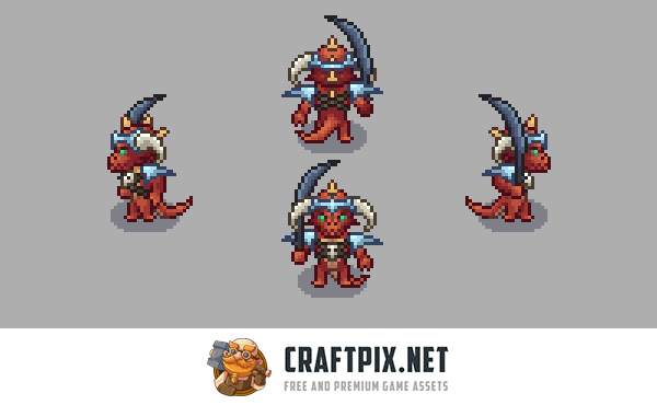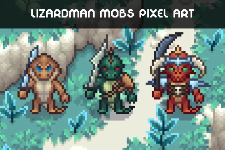 Lizardmen Pixel Art Character Sprite Pack is a must for game developers who want to introduce formidable reptile warriors into their 2D worlds. It contains truly worthy reptiles that can please you with their design and frightening appearance, which conveys danger and readiness to break anyone who stands in their way. Such diversity will allow you to easily create a unique world that will be filled with elements of RPG, MMO, fantasy, runners, battles, survival, exploration, adventure and even a futuristic city, where these evil lizards will become dangerous opponents – mutants who made their way through the traps of laboratories.