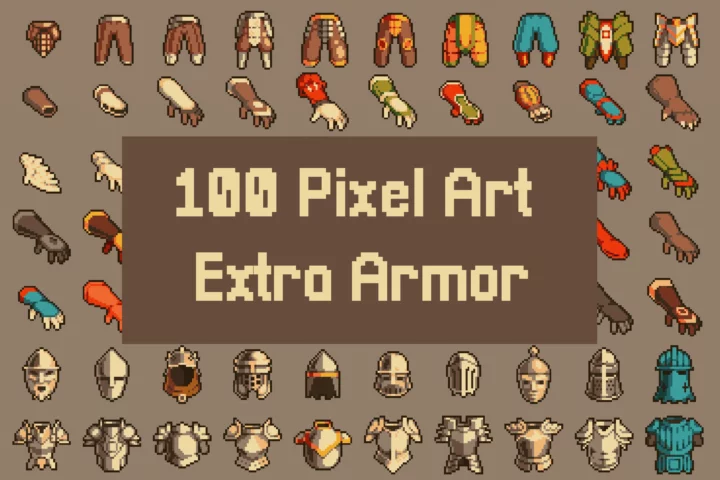 Here is the Pixel Art Knight Armor 32×32 Icons, a must-have for any creator of ancient worlds of valor and honor! Whether you are a beginner or an experienced developer, this set will help to protect every player with special armor that will provide worthy protection in battle. Regardless of whether you are creating a medieval RPG, an epic strategy, quests filled with special traps, exploration, survival or MMO adventure in the roguelike genre, this high-quality set of pixel art will give you everything you need to fully equip your characters for battle. With a rich variety of armor, from durable cuirasses to battle-worn helmets, this set will ensure that your warriors, paladins and rogues will be ready to conquer dungeons, defend castles and participate in legendary quests.