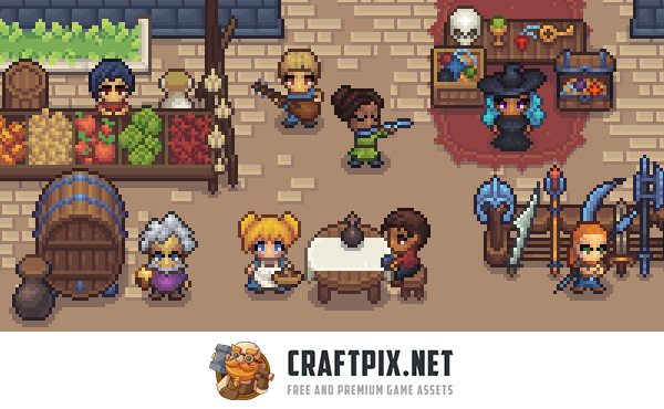 Due to the fact that the characters have several options for orientation in space, you can easily create visually rich, functionally smart market platforms, along which each NPS can freely move or stand behind the counter. All elements are edited in editors such as ASEPRITE or Photoshop. It is easy to configure colors, add animations or reprofile kiosks for quests, events or seasonal topics, such as festivals and night markets. Regardless of whether you are designing a system of economics of items, carrying out weekly city events or build a peaceful center before the battle, this set gives you everything you need so that your world feels genuine, lively and full capabilities. In addition, all modern gaming genres become available with it, including early rings, battles, survival, research, adventure, quests, strategies, RPG, MMOs and the like.