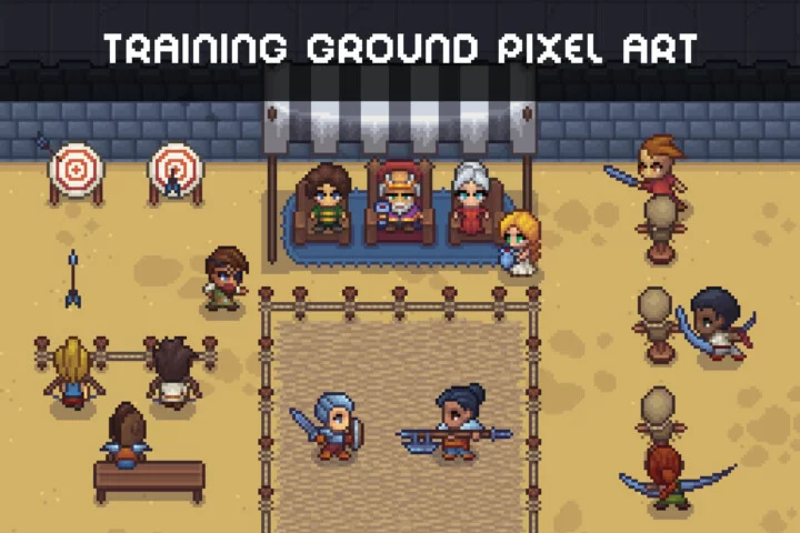 If you’re developing a role-playing game and want to immerse your players in the exciting process of preparing for battle, the Pixel Art Training Arena Tileset for RPG Games is your perfect companion. The journey of every great hero begins not on the battlefield, but in the training grounds, where strength, discipline, and skill are forged. However, creating a detailed arena filled with an authentic medieval atmosphere can quickly become one of the most challenging tasks for developers. Without the right set of assets, your training arena may feel empty or monotonous, losing the excitement that keeps players coming back.