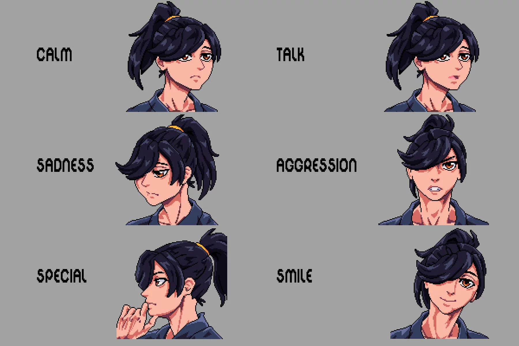 Introducing the Pixel Shinobi Avatar Icon Pack for Dialogue, a stylish and expressive collection. It is created for 2D game developers who want their characters to speak with personality, emotion, and narrative depth. This pack is designed specifically for dialogue systems, visual novels, MMOs, and RPGs, including conversations, combat, exploration, and story-driven adventures where facial expressions play a crucial role in player immersion.