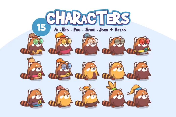 Introducing our bright and cute Red Panda Characters Game Sprite Pack, designed to bring charm and creativity to your gaming worlds. This pack includes 15 unique characters of playful red pandas. Each one is full of personality and reflects the essence of cuteness and fun. Thanks to compatibility with such formats as AI, EPS, PNG, Spine, JSON and Atlas, these sprites are perfect for various platforms and genres. Even if you want to create a creative RPG adventure filled with elements of fun, quests, exploration, survival, or even MMO battles, where these cute guys will be your main assistants on this thorny path.