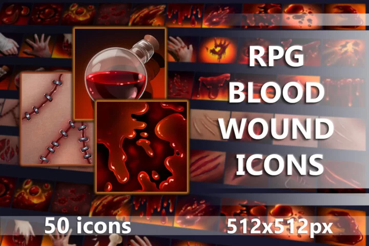 Introducing the RPG Blood Wound Game 512×512 Icons, a dark and gritty visual asset pack created for developers looking to add visceral realism to their RPG, horror, or survival games. Whether you’re creating a post-apocalyptic medical system, a brutal combat log, or a fantasy inventory with a focus on injuries and healing, this collection is an essential toolset for adding gory drama to your UI. This icon set includes 50 highly detailed 512×512 illustrations designed to depict a variety of medical and combat wound scenarios with cinematic intensity and artistic precision.