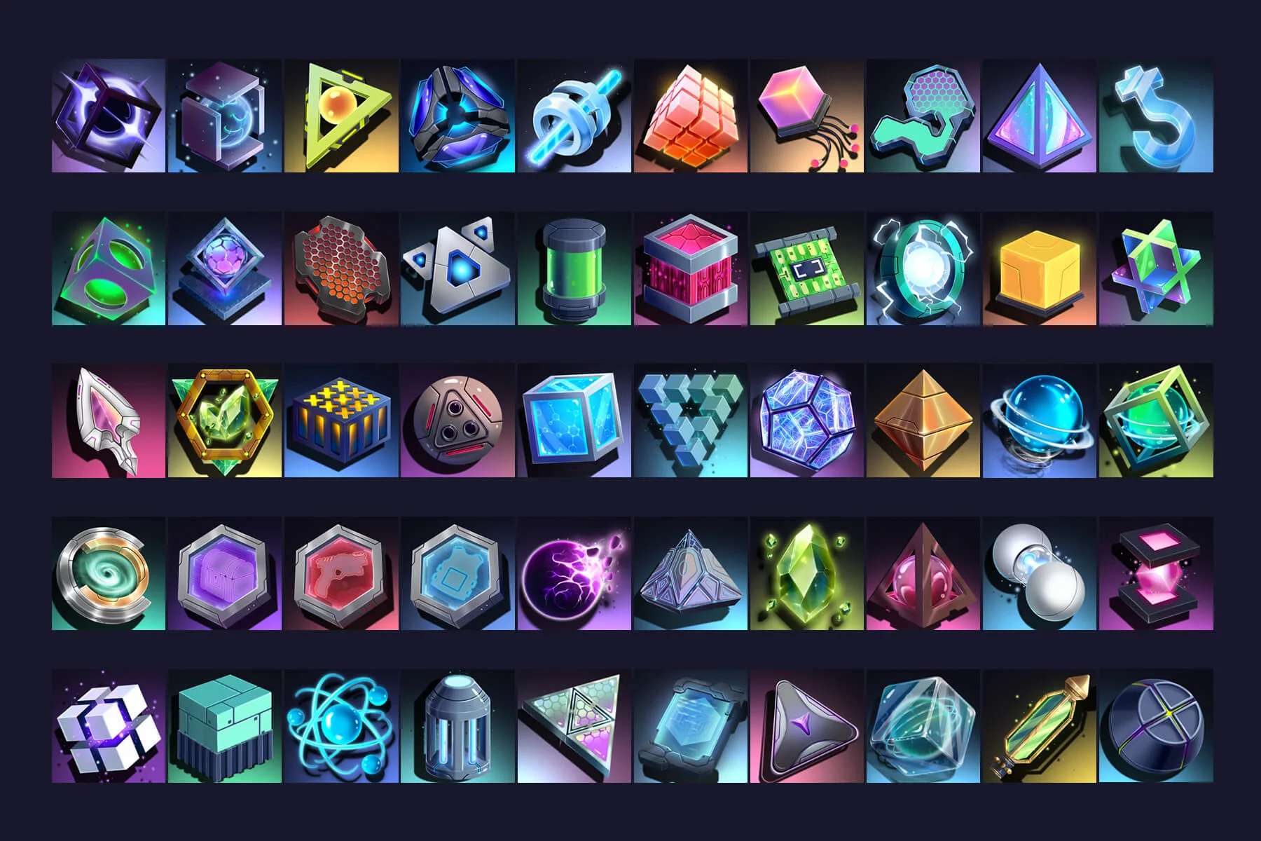 Introducing the Sci-Fi Artifact Icons 512×512 Pack, a stunning collection created for futuristic game developers, UI artists, and digital designers. It’s perfect for anyone looking to infuse their projects with high-tech mystery and intergalactic flair. Whether you’re creating a space RPG, MMO, quest, combat, exploration, cyberpunk adventure, survival, strategy, or alien civilization simulator, these icons will add an extra layer of immersion and sophistication to your game. This collection features over 50 highly detailed artifact icons, each rendered in a vibrant 512×512 resolution, ensuring crisp, high-quality images on any screen. Each icon tells its own story, from ancient alien relics glowing with unbridled energy to futuristic data cores, plasma cubes, and energy reactors humming with power.