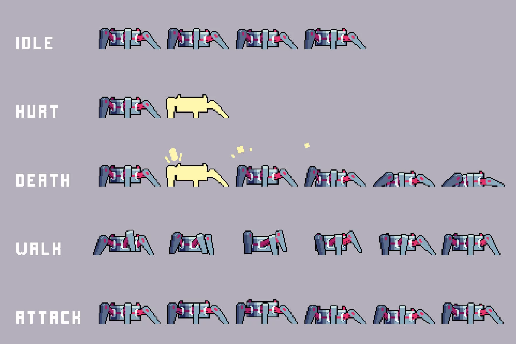 Each sprite is designed in a bright clean pixel art style, perfect for retro shooters, sci-fi platformers, runners, combat, side scrollers, quests, exploration, space adventures, survival missions, base defense games, and cyber roguelikes. They also feature a unique set of immersive animations, including hurt, idle, death, walk, attack, and special. All characters are fully editable in tools like Adobe Photoshop or Pixel Edit, so you can adjust colors, change animations, or integrate them into your game engine.