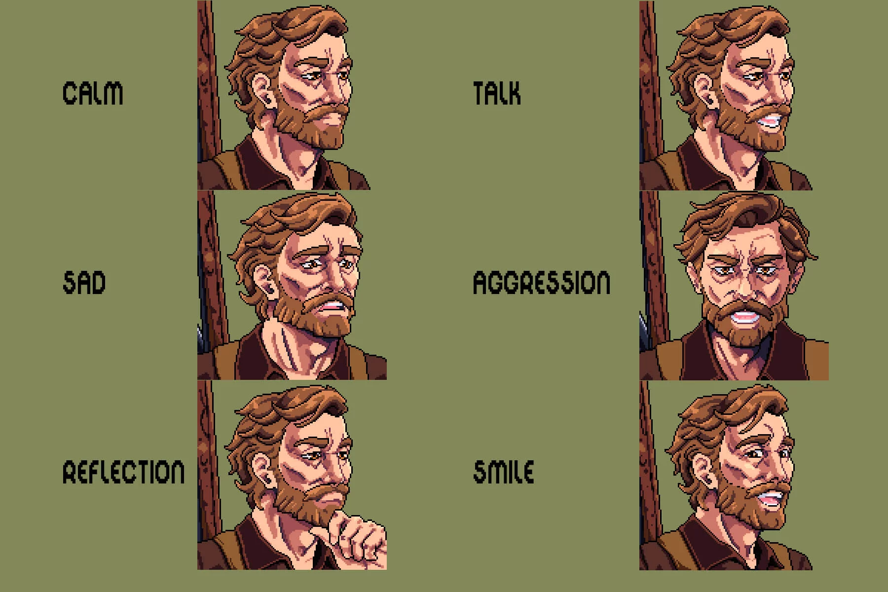 Emotional Variations: Each portrait is available in several moods—Calm, Conversational, Aggressive, Smiling, Reflective, and others—allowing you to create dynamic dialogue and believable character reactions. Each portrait is meticulously crafted in high-quality pixel art, delivering a clean and harmonious retro style perfect for RPGs, combat, exploration, survival, tactical adventures, story-driven games, or visual novels. Whether your story takes place in a ruined city, a lifeless wasteland, or a hidden survivor camp, these portraits will infuse your dialogue with life and emotion. All portraits are easily editable in Adobe Photoshop or Pyxel Edit, so you can customize colors, facial expressions, and features to match the unique aesthetic of your project.