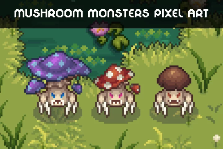 Deep in the shadows of the enchanted forest, something moves under the mossy undergrowth, pushing the most frightening thoughts of the mysterious and unknown, this is what awaits your players if you use this Top-Down Pixel Mushroom Sprite Pack. Amazingly frightening creatures await in this pack for everyone who dares to visit the thickets of the enchanted forest. Elements of horror and fear can be easily brought into the worlds of RPGs, MMOs, quests, battles, explorations, survival, adventures, and even side-scrollers, platformers, dungeon crawlers, survival adventures, and dark fantasy worlds filled with constant combat. Whether you need an unsettling enemy, a cursed guardian or a boss hiding in a mystical swamp, these characters will breathe life into the ecosystem of your game.